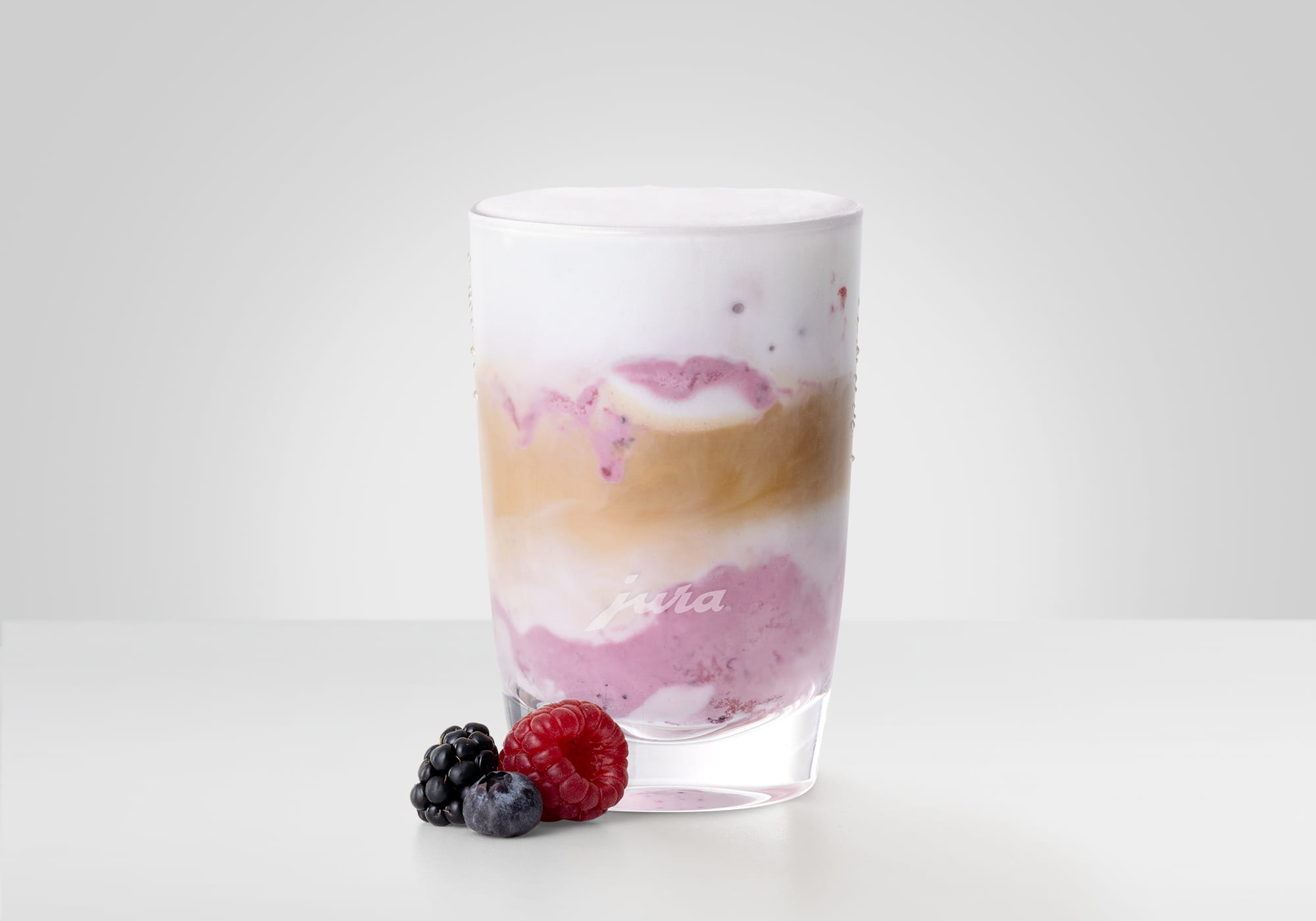• Put two scoops of wild berry ice cream into a small latte macchiato glass.