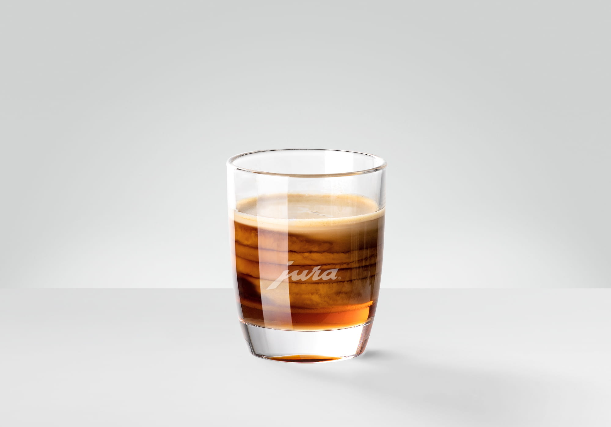 • Prepare the espresso directly in the same espresso glass, and top up with coffee cream.